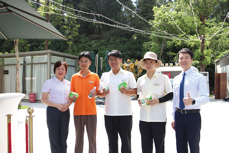 活動(dòng)當(dāng)天,酒店副總經(jīng)理周慧清帶領(lǐng)管理團(tuán)隊(duì)深入戶外工作一線,將一份份清涼飲品送到員工的手中,既表達(dá)對(duì)他們的關(guān)心和問(wèn)候,也傳遞著酒店對(duì)員工的感謝和敬意。每位戶外崗位上的員工都陸續(xù)收到一份清涼禮包,內(nèi)有清涼茶飲品、礦泉水以及板藍(lán)根沖劑,確保他們?cè)诟邷叵鹿ぷ鲿r(shí)能感受到來(lái)自酒店的關(guān)懷與支持。